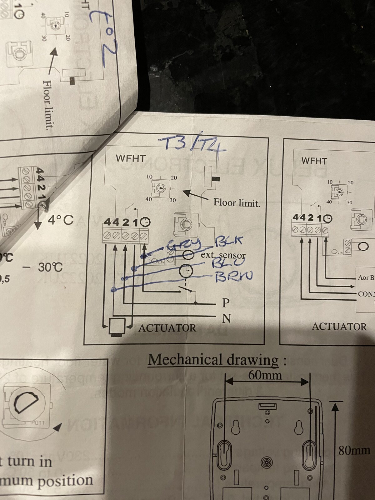 Hi, I am looking to change an analogue thermostat to a digital one to control our wet under floor heating. Could someone please help me identify the correct wiring please.