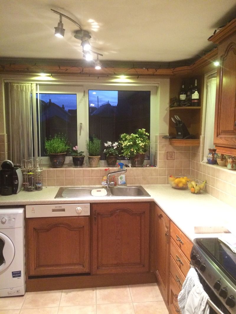 There is not much to paint in the kitchen, just a small wall and round the Windows but what would go with the wood cupboards? Just not magnolia/white.