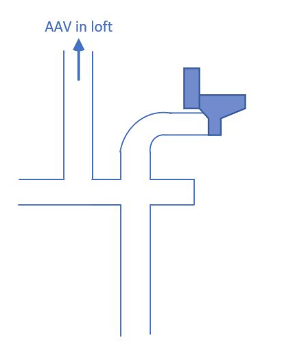 The existing stack has an offset in the floor void of the 1st floor of my property. The upper section leads up to an AAV in the loft. There is a toilet connected to one of the branches at the offset.