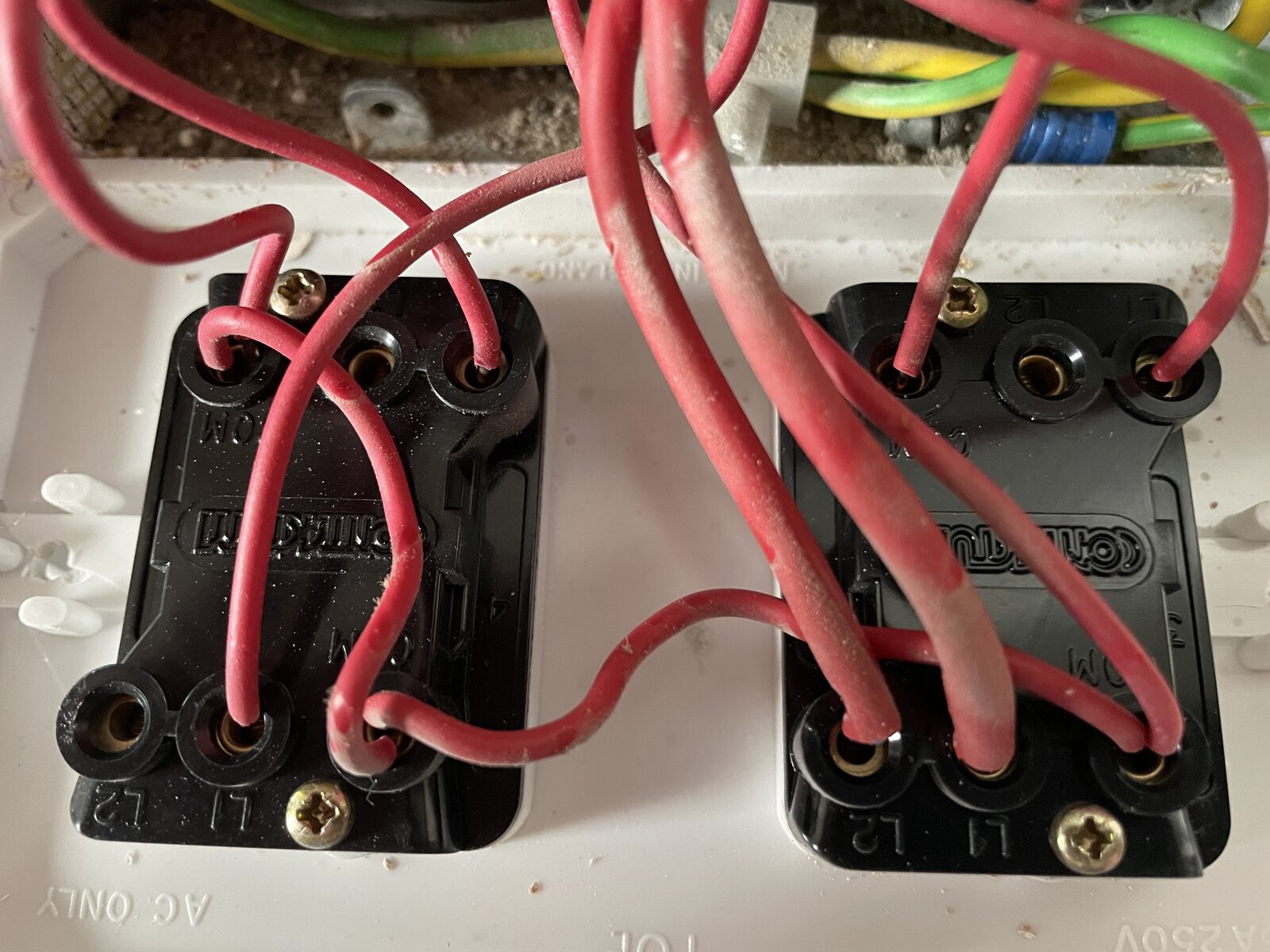 Do one switch at a time. The switch plate must be earthed,as advised on your other thread.