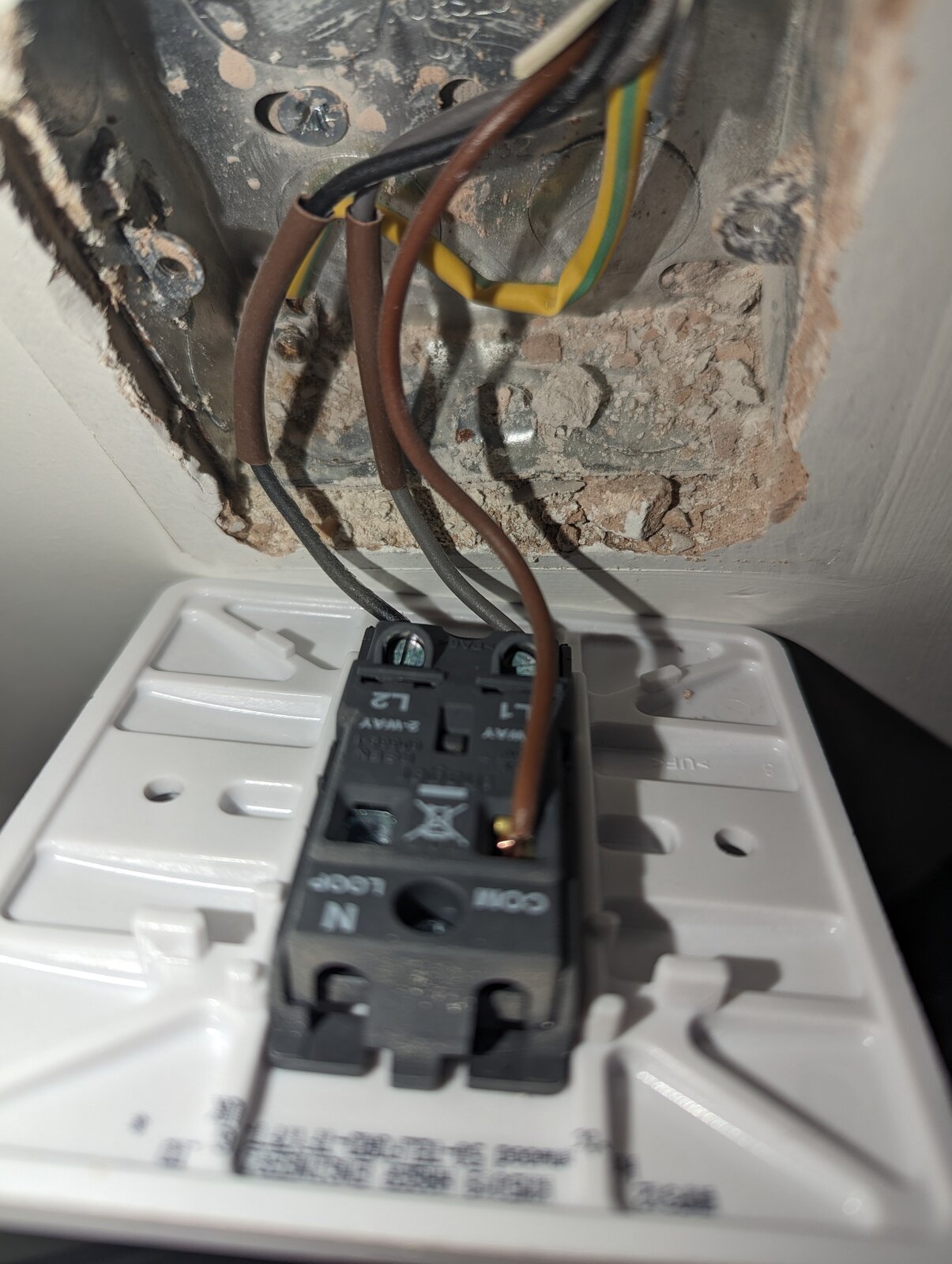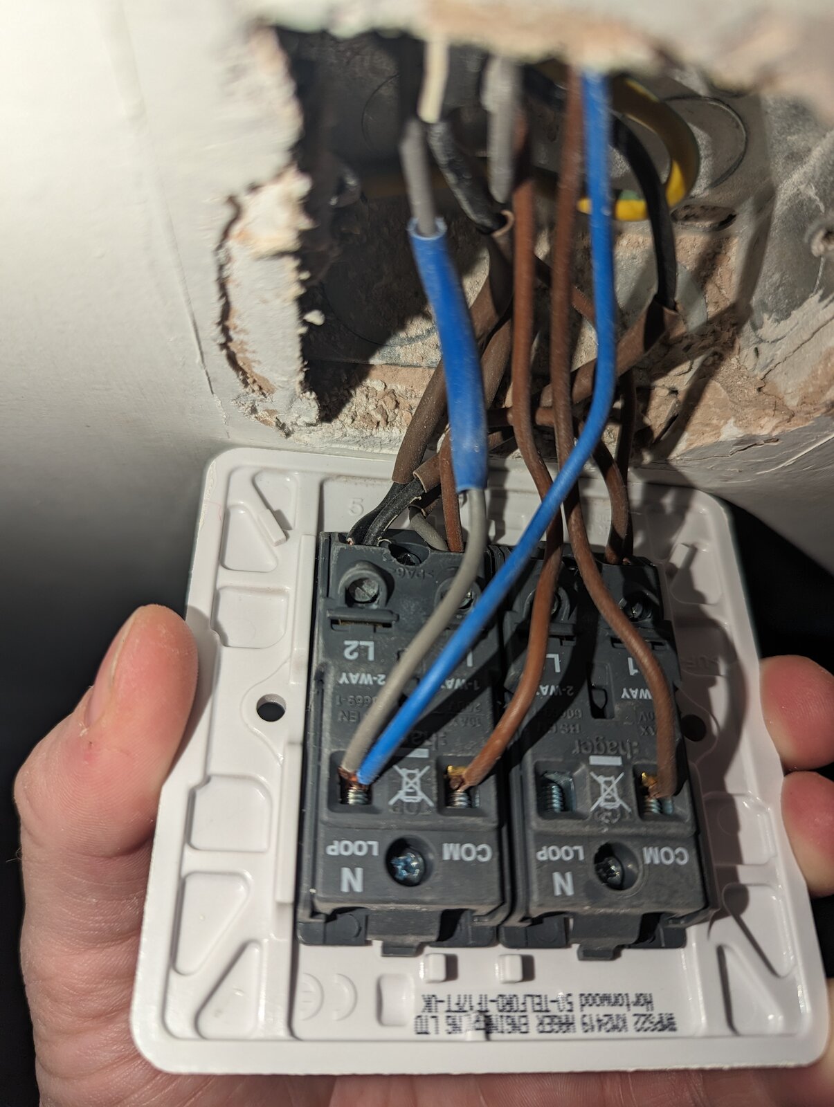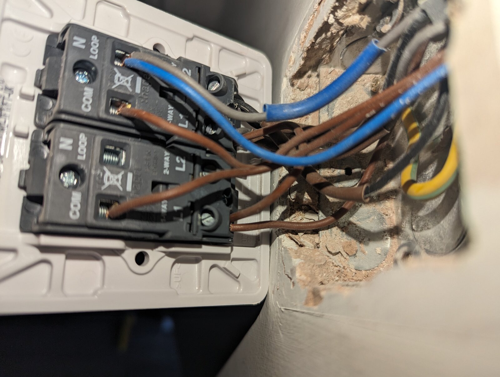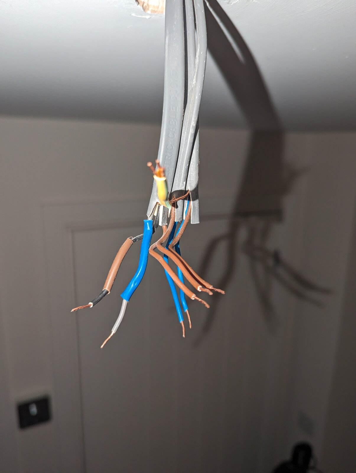 I've read through a few posts and apologies if I have this totally wrong but do I connect the two sleeved cables into the new fitting and get connected blocks and connect the remaining 3 brown together, 2 blue together and 3 earth together? I've attached photos to show the existing and new.