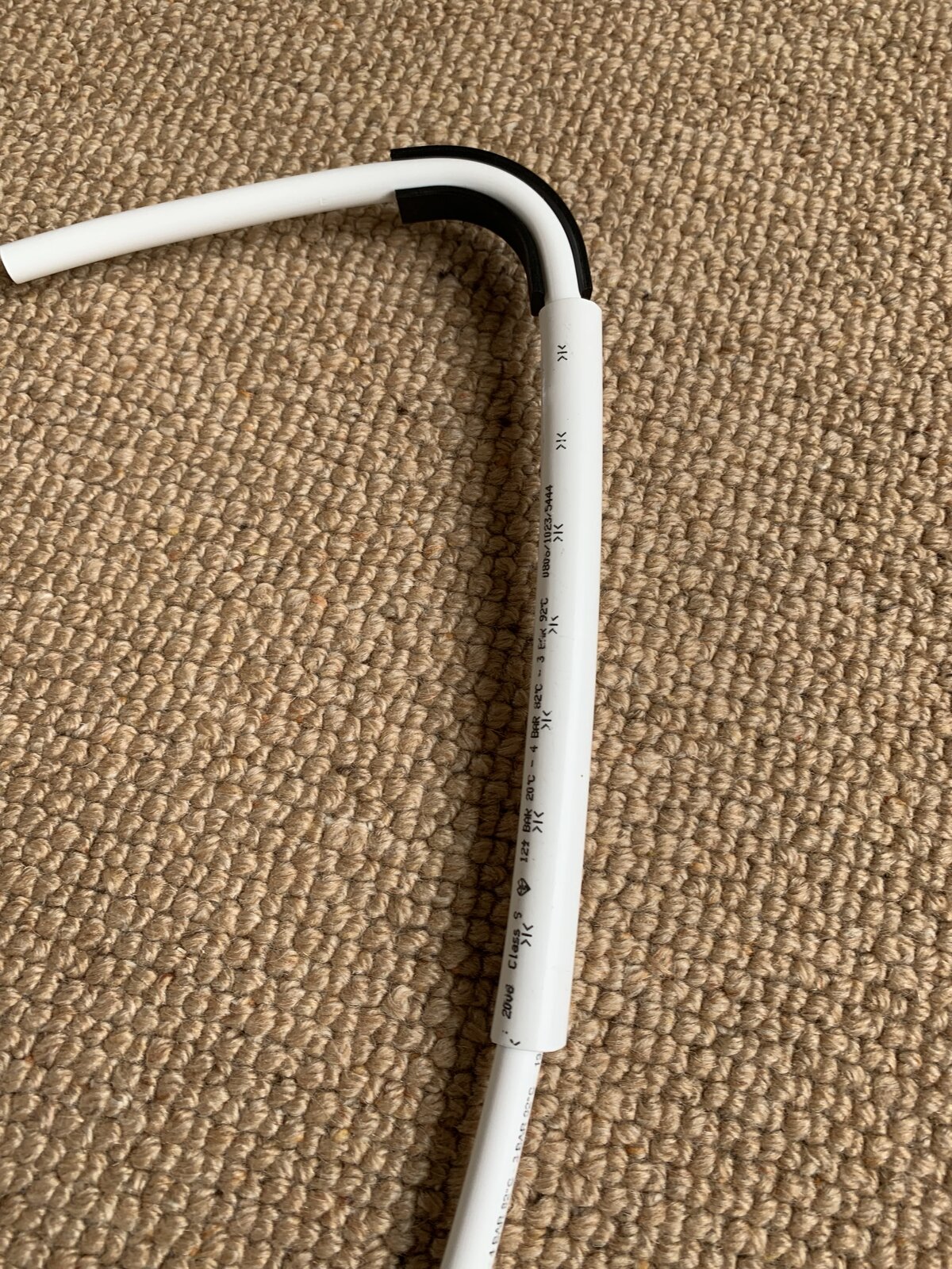 - As per 1, but extend diagonally from existing end-point to new position, again, using corner valve - see pic 2, with ‘x’ being the point of exit
