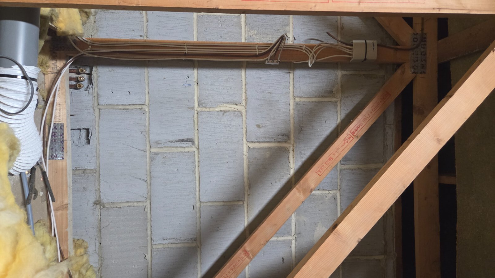 Its about 50mm for a shower valve. The channel on the right side can be filled in as that isnt needed now.