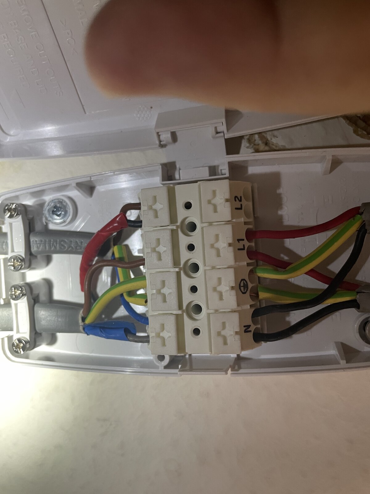 Hi it looks okay to me but I don’t have a switch to try it, on the right are the old wires from the light and on the left new blue/brown to lights and from switch grey with blue tape - neutral, black with red tape - switch wire, brown live, earth sleeve pulled back to check termination hopefully put rest of ceiling up tomorrow after I put in smoke alarm cables