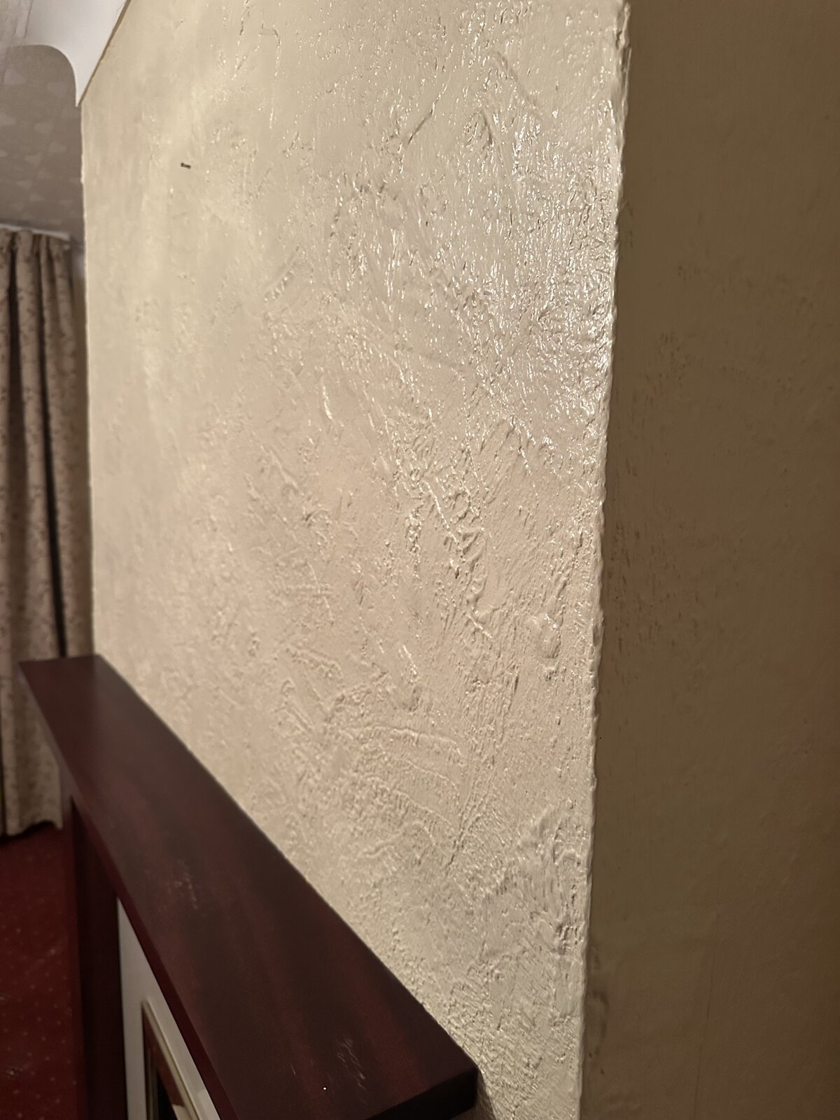 This is the only area in the house built 1960 that has this , it’s smooth but solid , to me the look and feel resembles hard cement painted with a gloss.