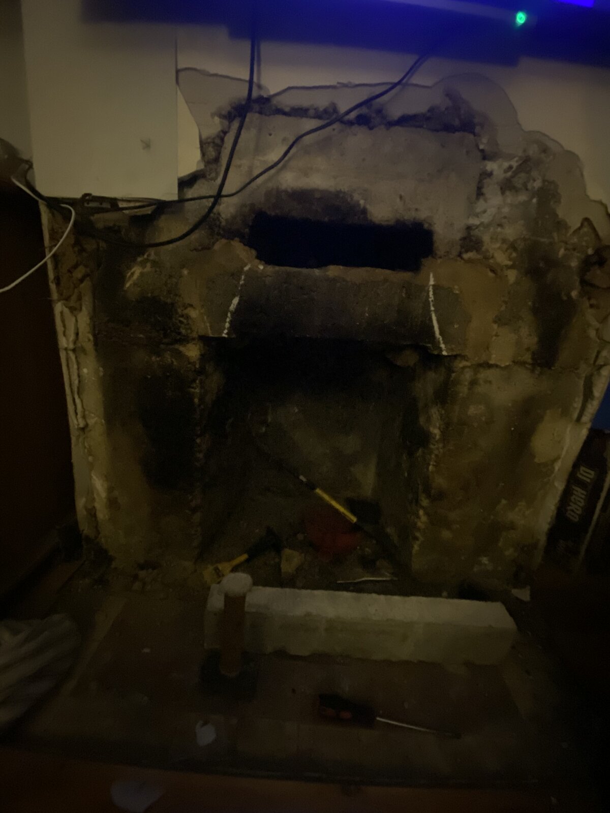 as you are going to redec the fireplace I would expose the brick work above and work out what is resting on what on what.