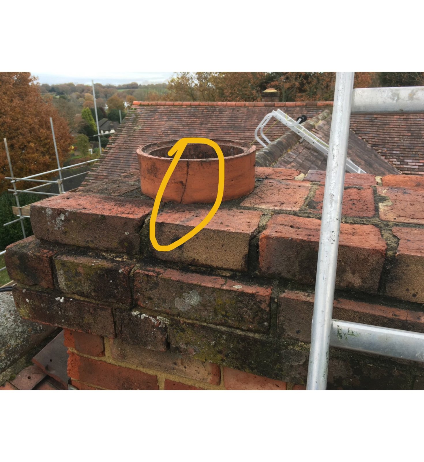 There is no flaunching on top. Should I just add it? However, the pots are only 3 inches off the brickwork and I need to add the cowl for the flue like the existing which won’t give me much space for flaunching.