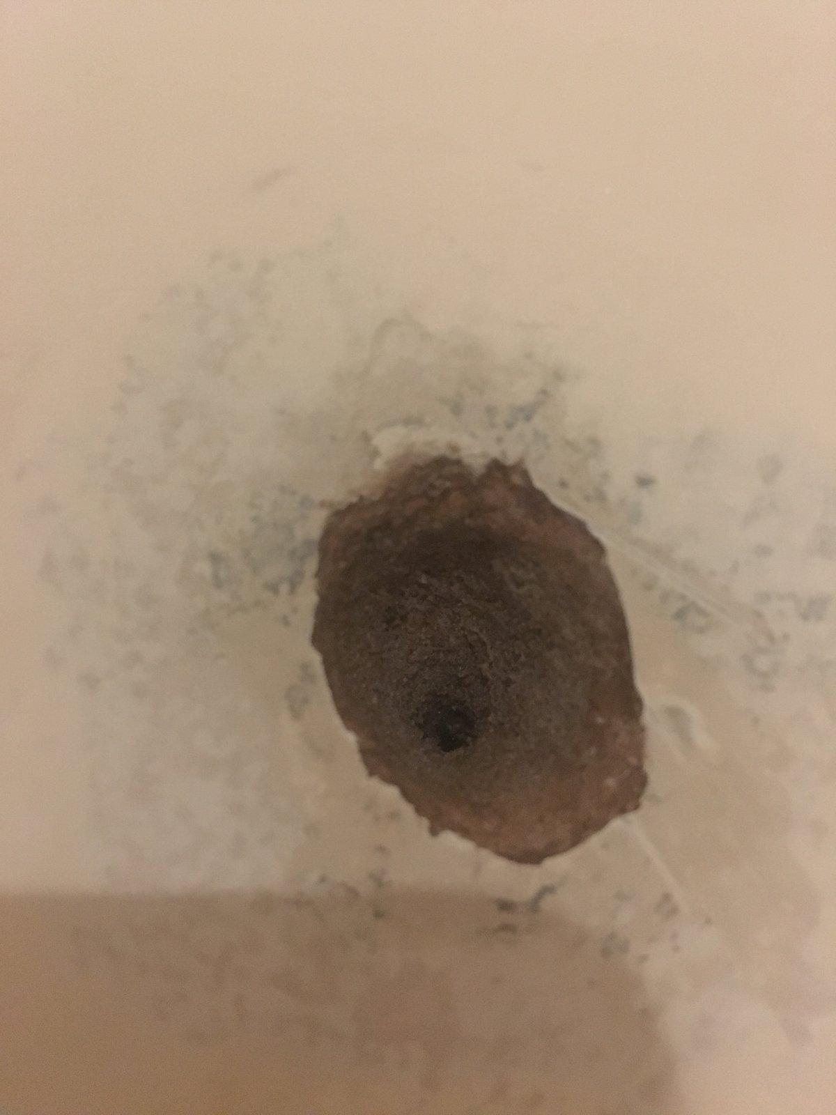 I recently posted about a stain on our bedroom wall which I found to be two nails imbedded in the wall which were corroding resulting in a bubbling almost foam like appearance to the plaster around them.