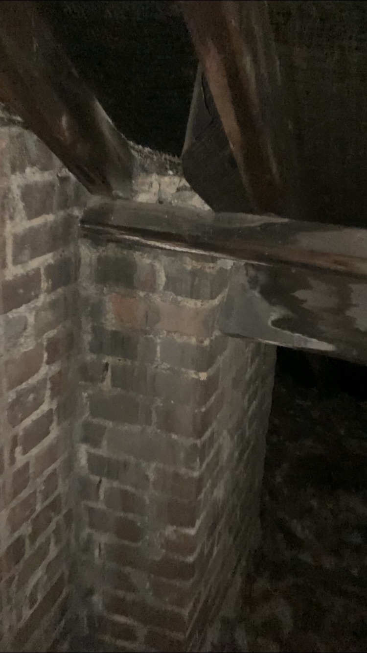 To remove existing flaunching on both stacks and existing pointing on rear chimney. Re-point back chimney in Natural Hydrulic Lime 3.5. Re flaunch both chimney caps in Natural Hydrulic Lime 3.5