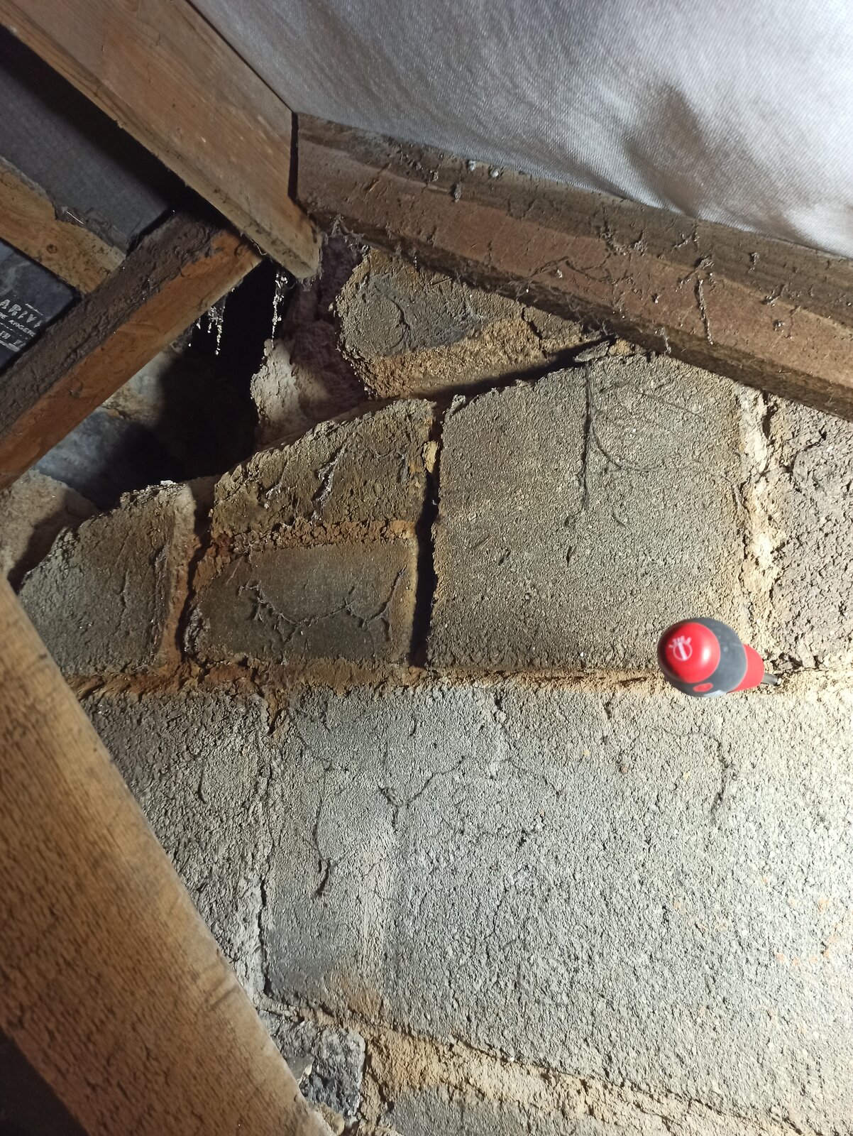 Having a new roof done and they have found the bricks/mortar on at least one of the sides has basically turned to powder. That right hand corner you can see in the photo is also loose.