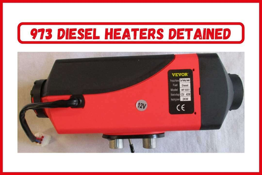 Suffolk Trading Standards Imports Surveillance Team have detained 973 diesel heaters at the Port of Felixstowe over the last two months. All products were found to be unsafe, with listings for all sellers removed on eBay.
