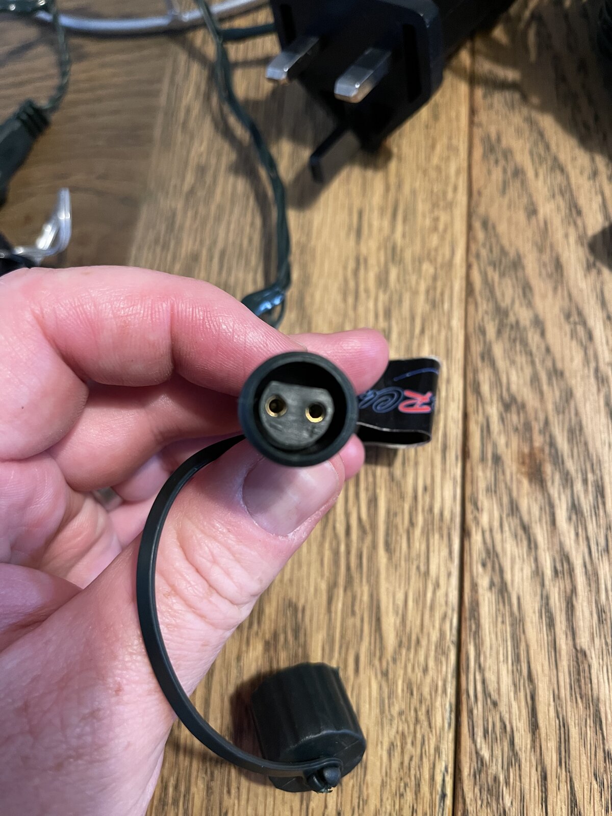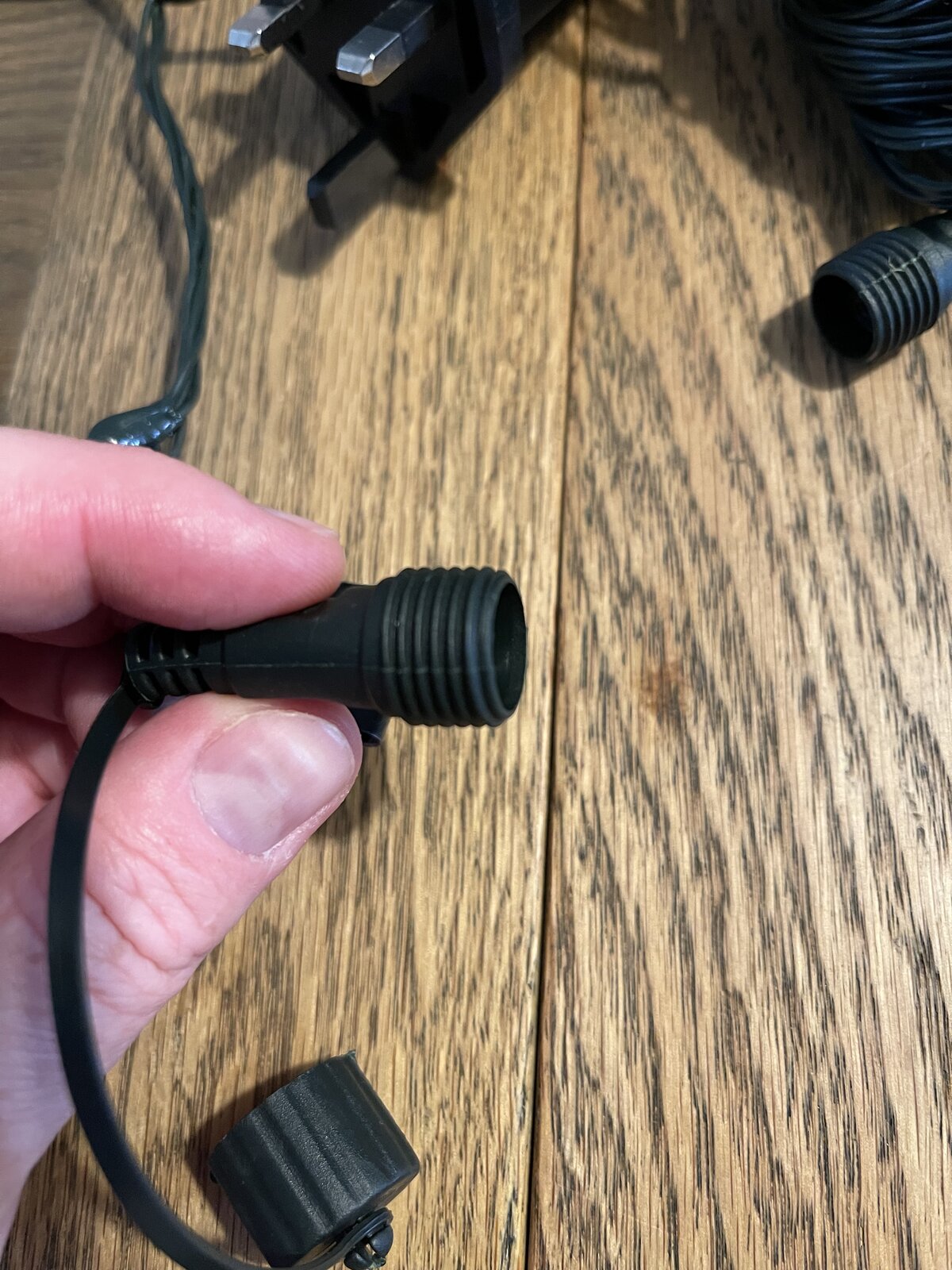 to cut a very long story short, these are interconnecting fairy lights (image of the connection terminals attached) and I have a transformer to plug into the string of lights. The idea is they daisy chain.
