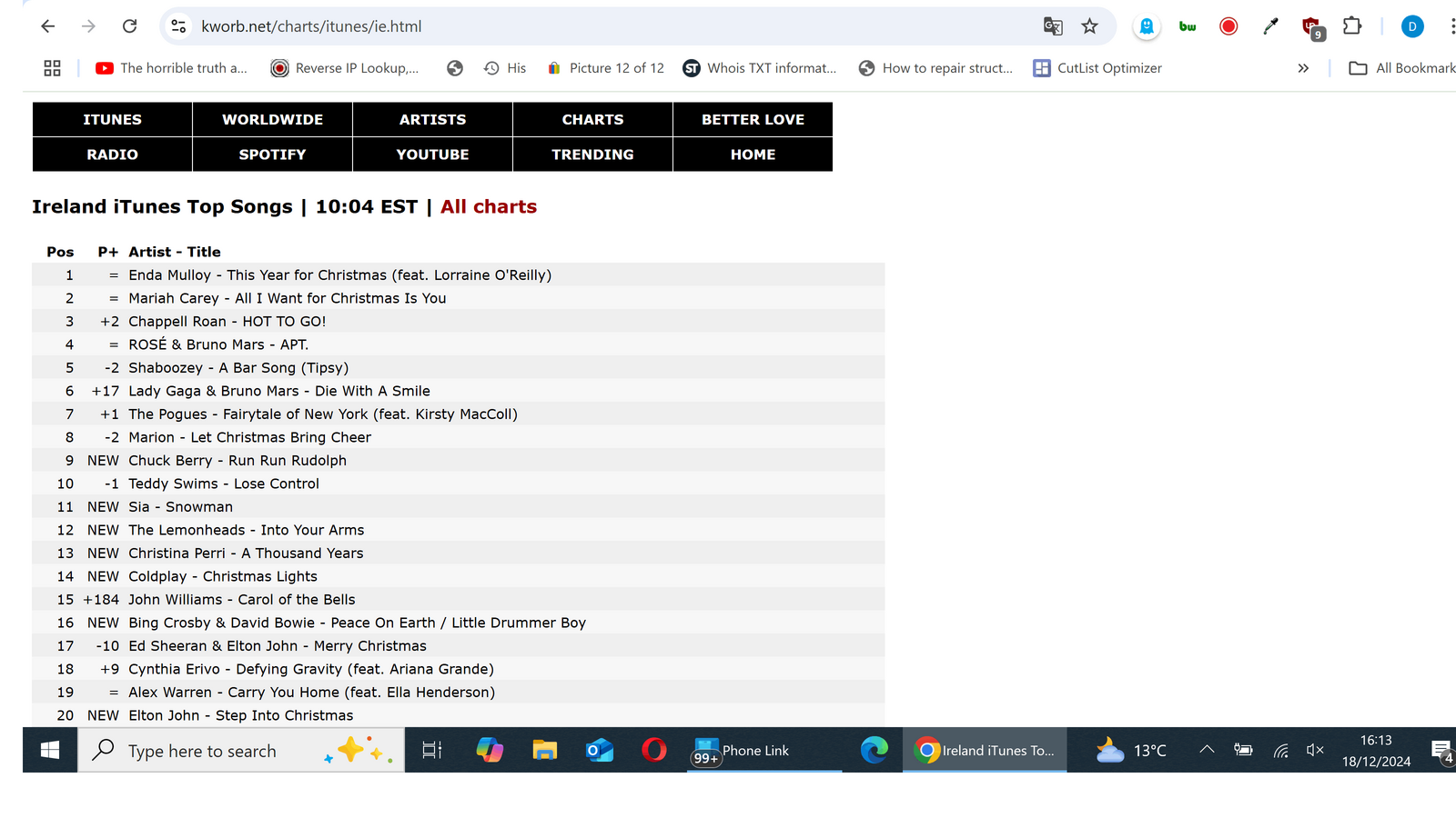 One of my best mates (Enda Mulloy , a lovely fellow is hoping to get a Christmas number one- I assume that he means Ireland rather than the UK).