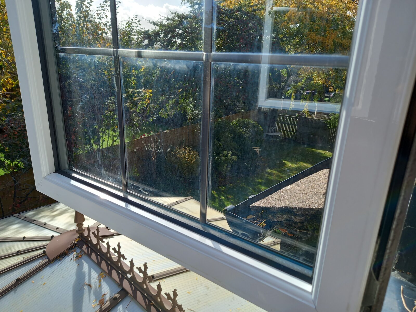 I have externally leaded double-glazing. There is streaking on every panel that I can only assume to be some form of leaching coming from the lead. We have tried everything to get the staining off but without joy.