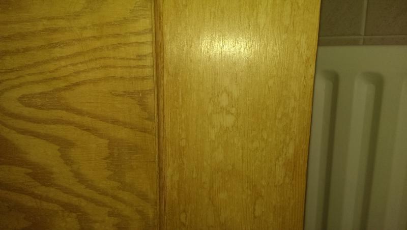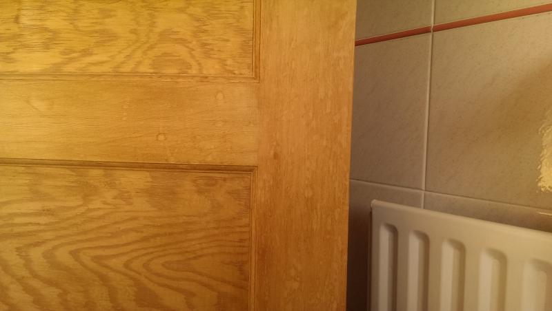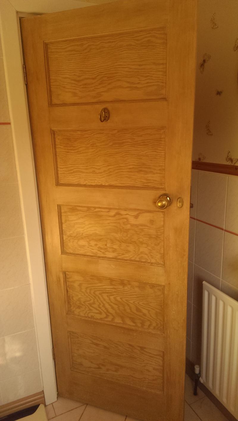 Hi - our 1930s house still has the lovely original panelled doors in bare wood (pine?). We sanded and waxed them some while ago but they have dried out and over time have become marked with drips and stains (worst in the bathroom natch) where people haven't been careful enough.