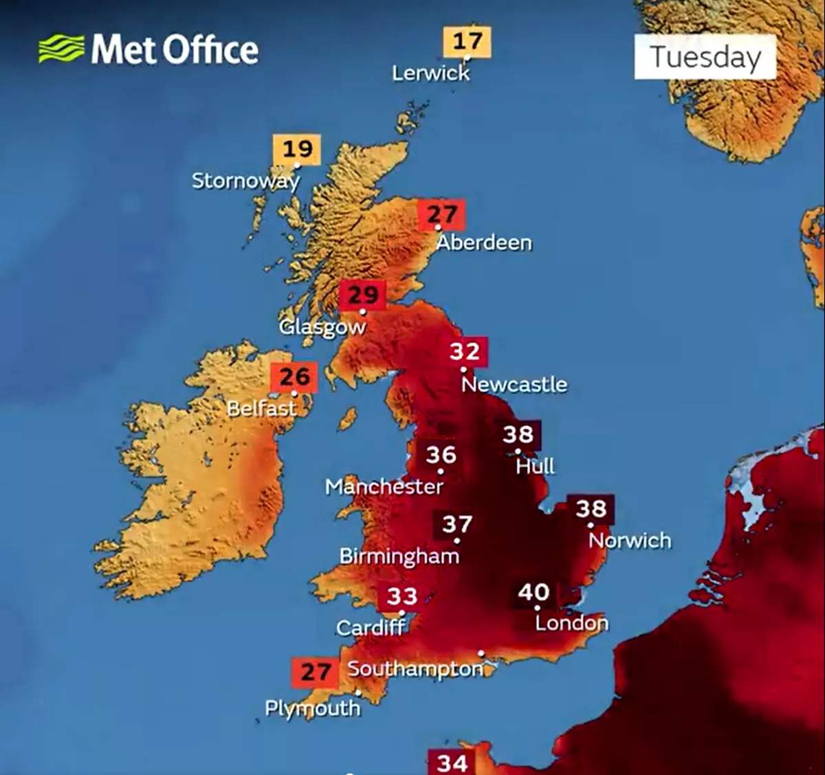 "I never imagined I’d end up seeing them in the UK. The doctored image has those darker reds on it but with much lower temperatures written on the map, which is why it looks like the image was faked."