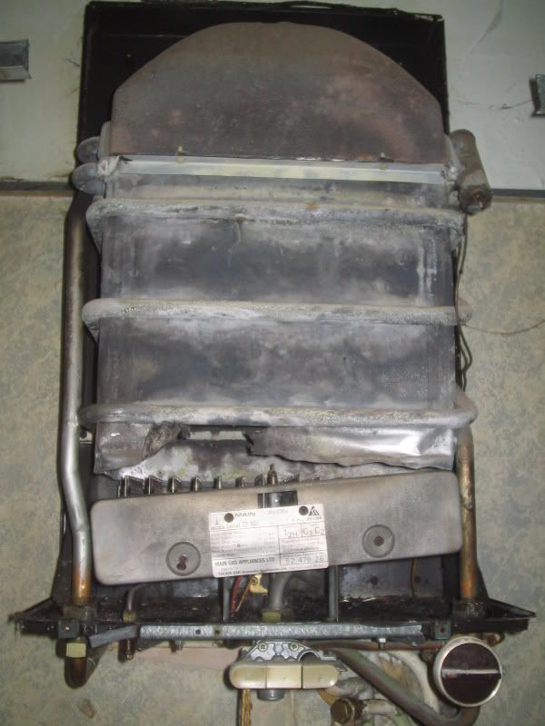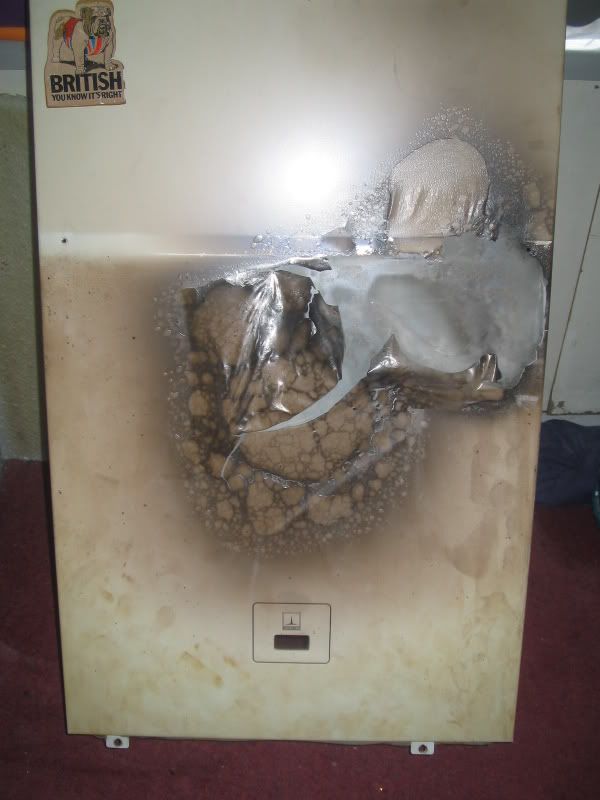 The picture highlights the reason why folk shouldn't paint the casing of their boiler or if situated in an airing cupboard, why they shouldn't stack their cloths round the boiler..