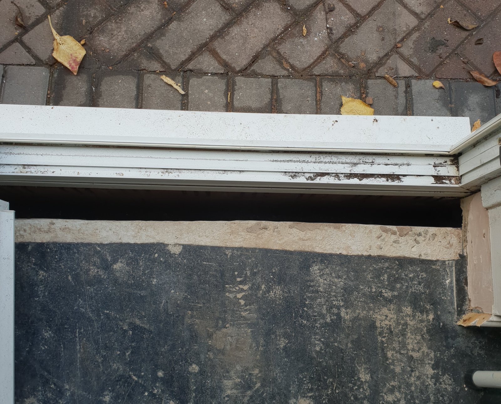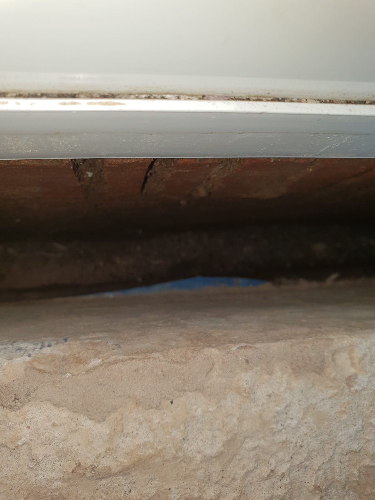 The DPM has been cut off at the base of the slab (don’t know why this has been done) and it looks like the slab is sitting on a course of bricks but can’t be sure, theirs also no DPC under the UPVC door