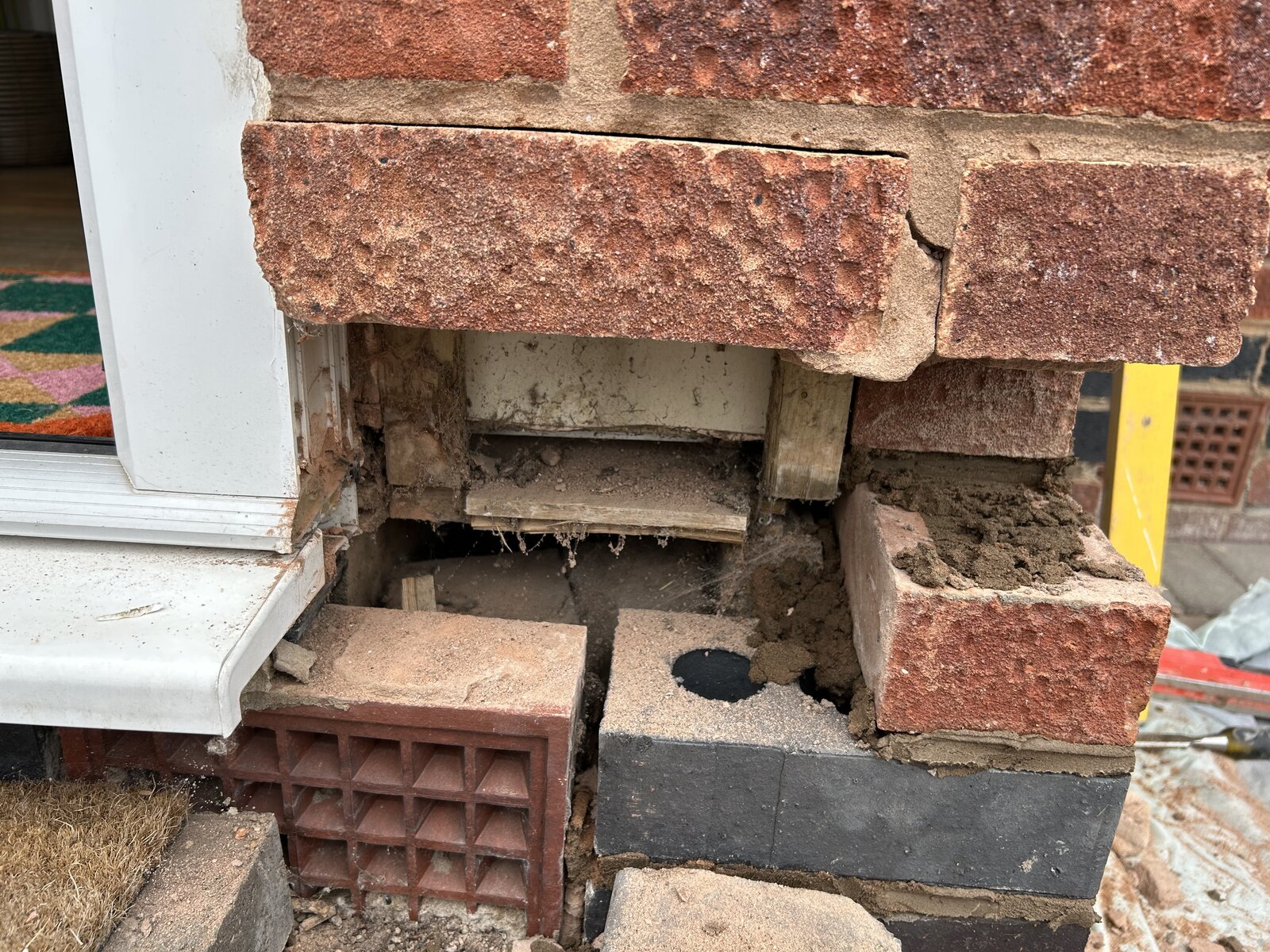 I took the bricks out and rebuilt it this morning, turns out the t&g floorboards had swelled and pushed that course of bricks out. Rubbish design, single skin too.