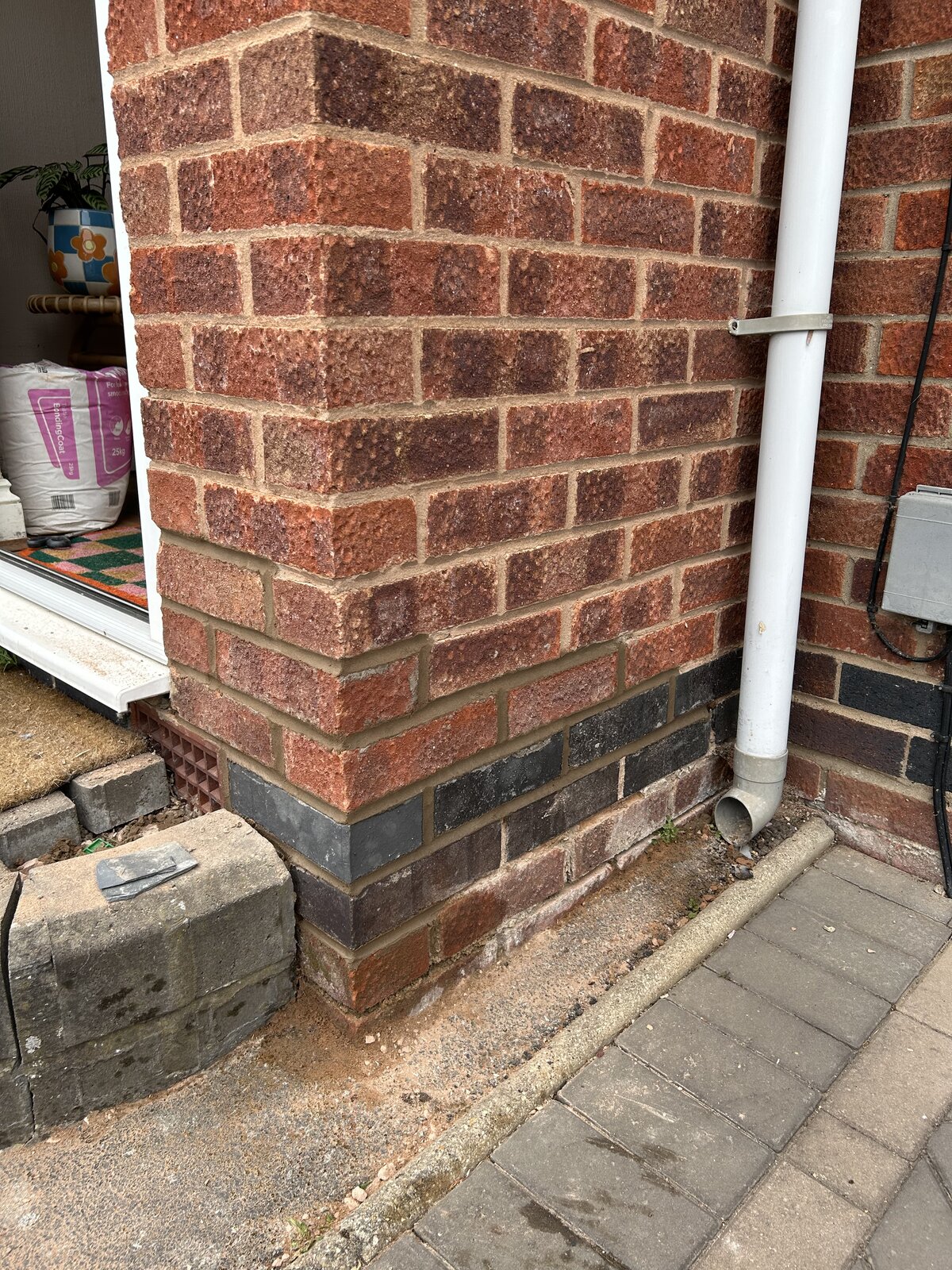Although the more I look at it, I reckon someone’s fitted that bit of dpc (a course higher than the dpc already is) retrospectively and made a pigs ear of it