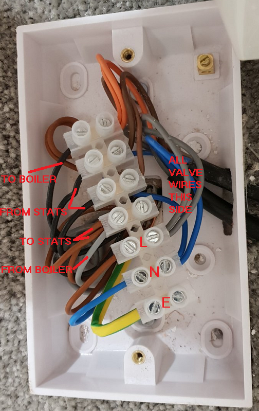 I was assuming that the very light grey wire was the one from the boiler but if it is - and the blue you mention - then there is no obvious supply anywhere in the pictures.Saying that, I would assume the cable with the Blue Neutral is from the boiler?