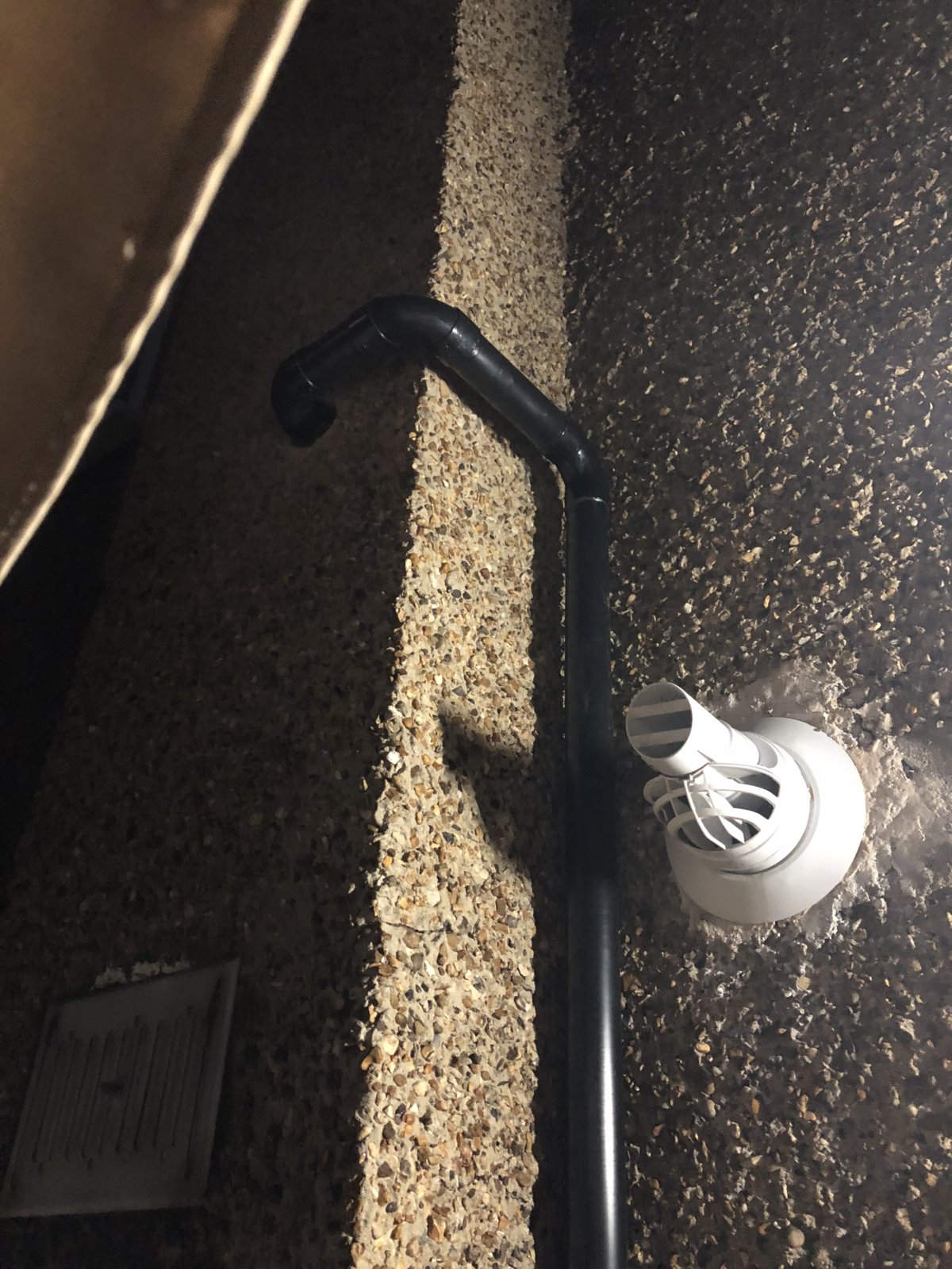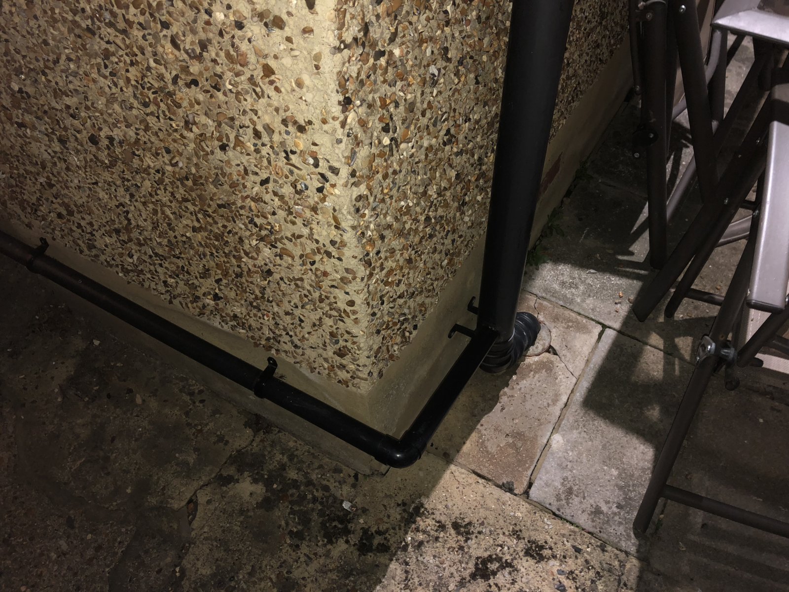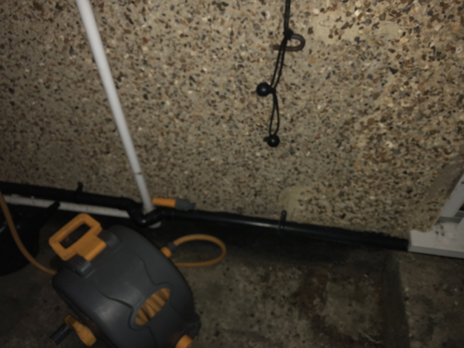 There is a horizontal pipe which has a very shallow incline. This is 3 metres long. This runs into the drain.