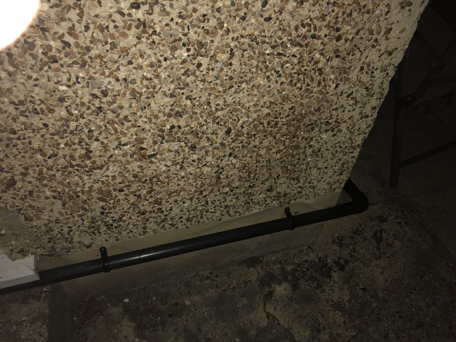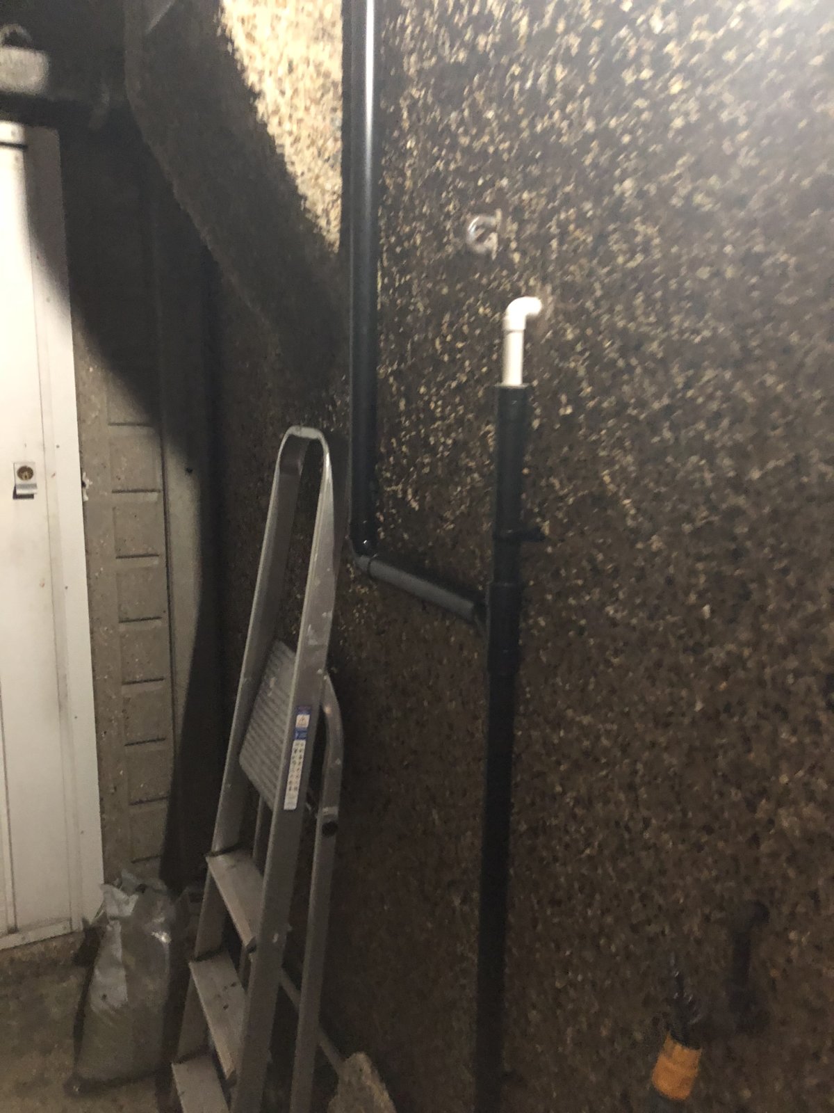 Last winter, the horizontal pipe froze repeatedly and had to be defrosted with kettles of boiling water.