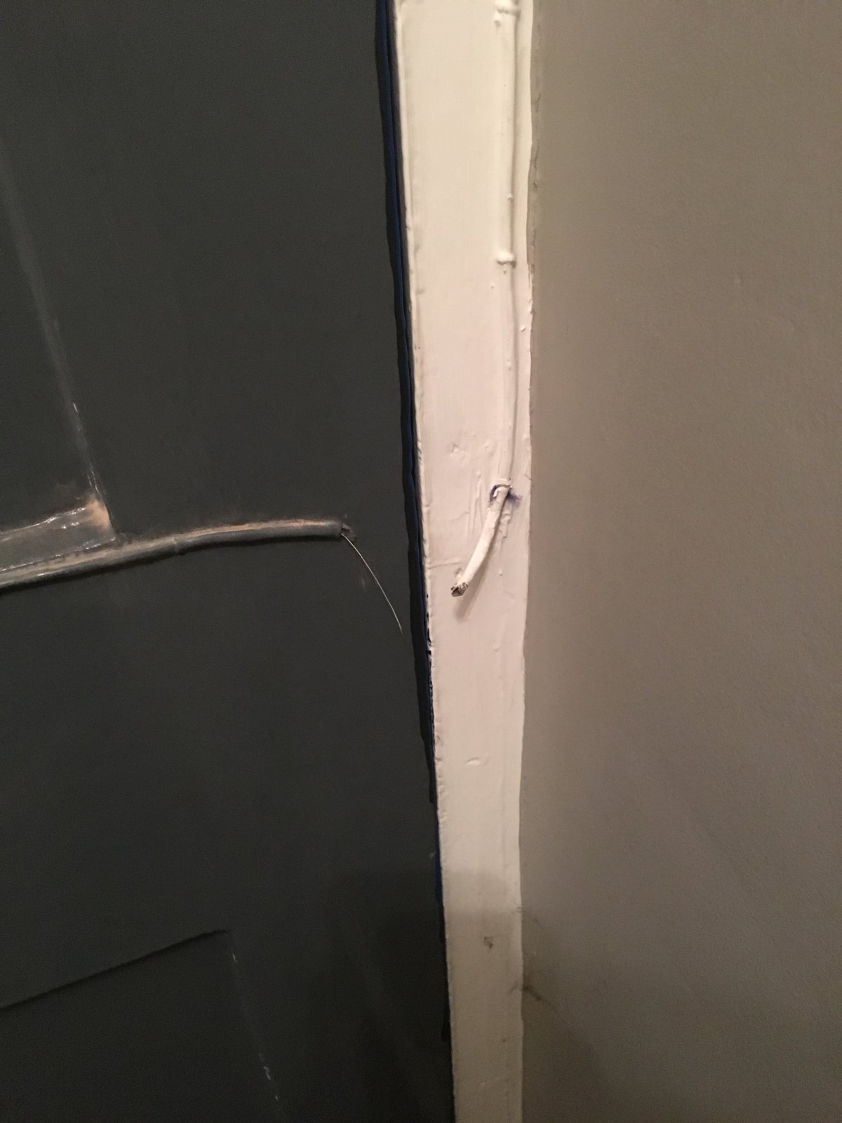 I have recently moved into the upper of two flats in a split-up terraced house, and I noticed when moving in that the “unlock” button on the Comelit intercom does not work. After checking the wire itself, my photo below shows that the cause of this is a break in the cable connecting the intercom to the lock. I have the missing piece of wire, and it appears to be 6-core alarm cable (or similar).