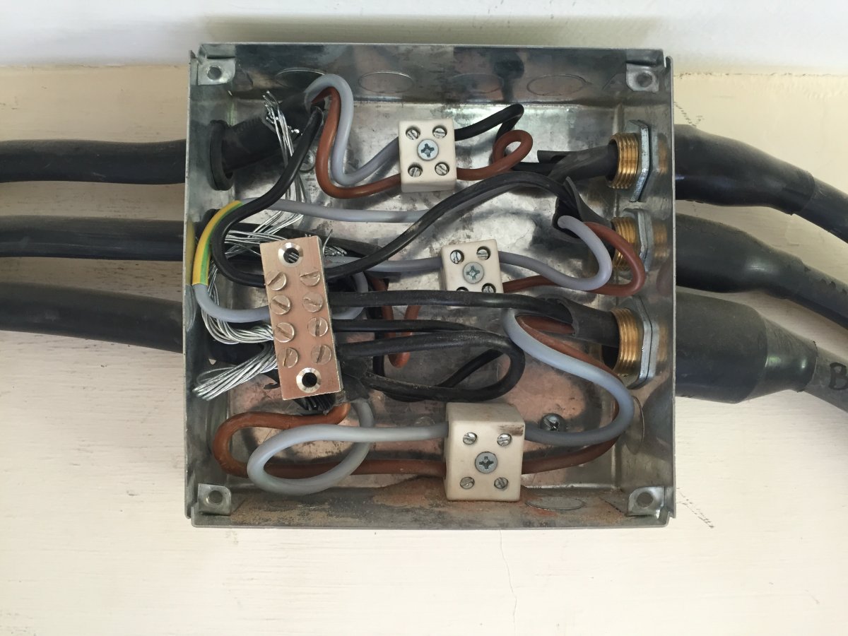 The box was already there so the swa could be terminated before going into the old plastic CU so the glands on the right were already done.