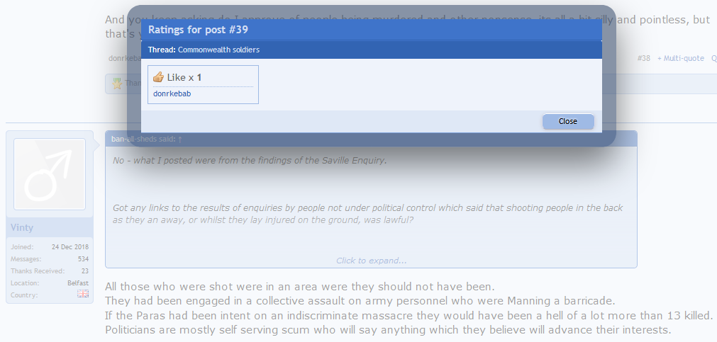 And no doubt the Mods will be along soon to side with those who think that British troops should just be allowed to shoot unarmed civilians in the back, or who are lying injured on the ground.
