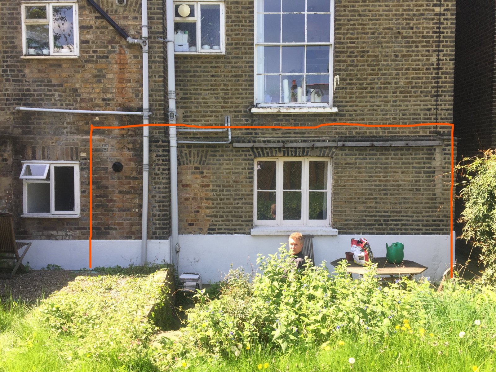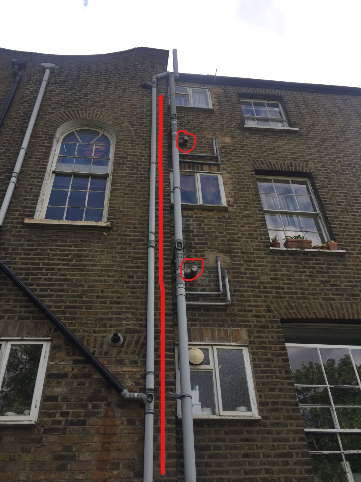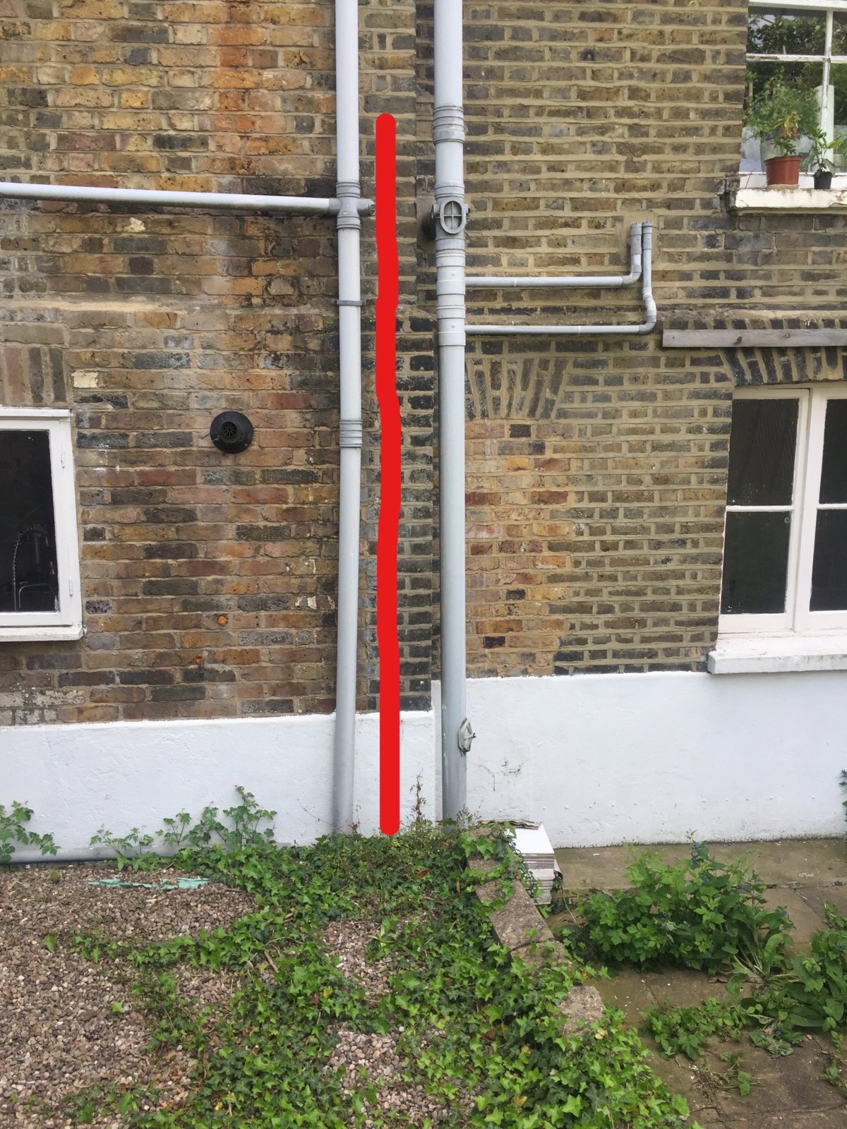 This forum has been my source of some valuable information for me over the years, I've got a problem with a soil pipe which is in the position of a doorway to an extension I'm planning on adding to a ground floor garden flat in London. I'd like to move to soil stack to round a corner of brickwork to an alternative position (highlighted red) but not sure what effect (if any) it will have on the soils to the WC of the three flats above. It's a Victorian conversion and the current soil are almost past their shelf life. I've also added the area that the proposed extension will sit and circled the WC soils which come out of the back of the building.
