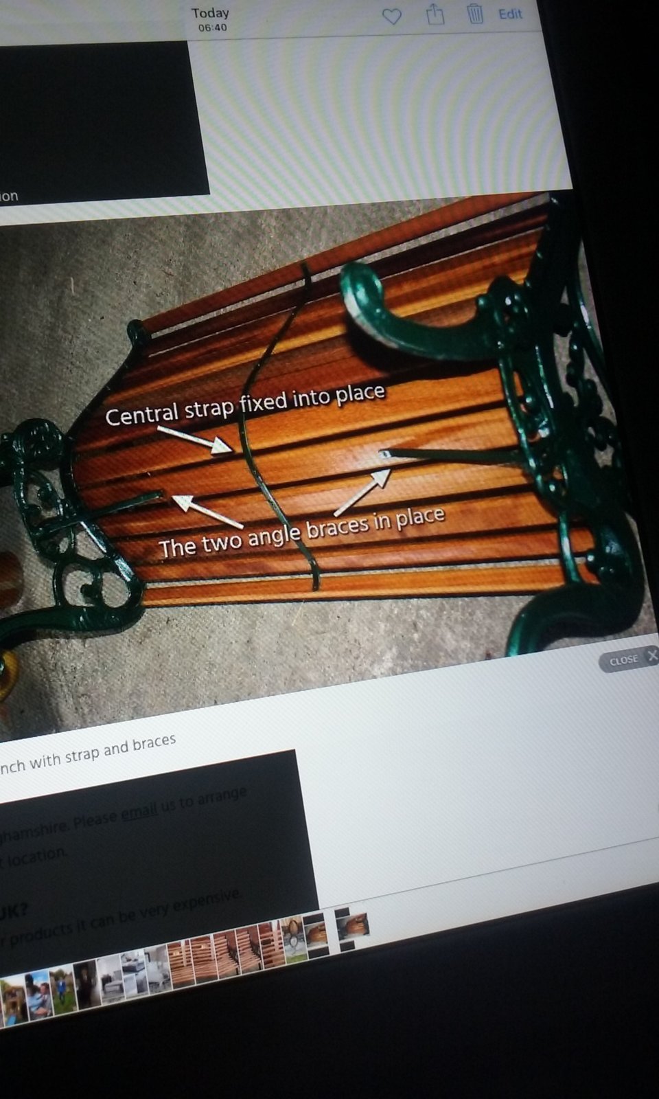 Thing is I have just restored a wooden bench of great sentimental value but have lost the Central Strap and the 2 Side Braces....and was wondering if anyone knows where I can obtain these...