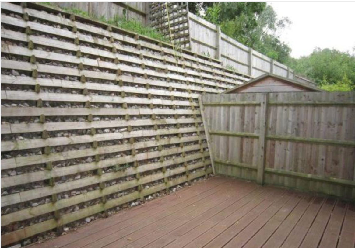 The embankment wall is retained with a timber wall, of a type I have found to be called 'crib.'