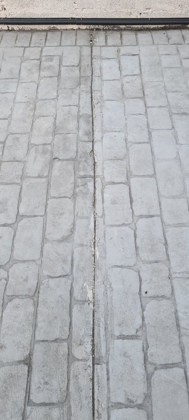 This was the state of the drive in the photos - it was really bad with trowel marks all over it, in places where there was no imprint etc we also had a horrible crack where he poured two different concrete lorrys mix too. Thats the really rough one going accross the drive (its unsealed here btw as you can see he tried a few test patches to see if the sealer would help things). I told him not to bother sealing as it was a mess and needed to be re-done.
