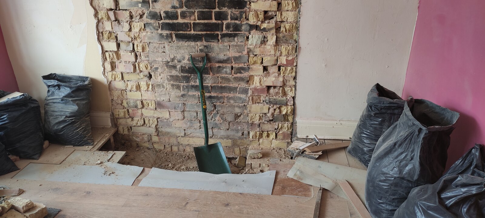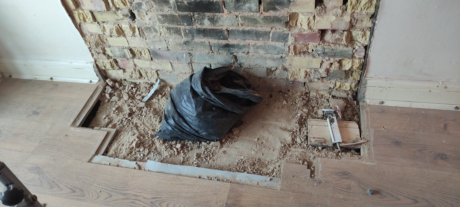 So ground floor chimney breast removed but concrete hearth and bricks below floor board haven't been removed. These appear to be supporting the joists so removal may lead to floor collapsing. Should I just place flooring on top after covering with DPM or do I need to take out the concrete and bricks and build flooring up? Many many thanks