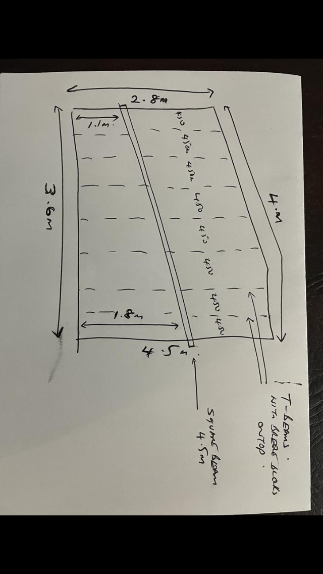 We’ve even fitted a strengthening steel under the beams , inside the outhouses ceiling . It’s running diagonal on ceiling & supported on 2 walls.