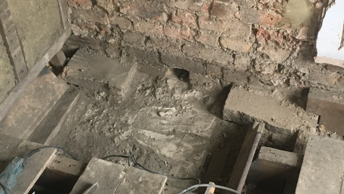 I've just taken out the hearth in one of my first floor bedrooms and discovered two concrete slabs built into the wall. They're really solid & sturdy, but I'm not sure how far they are built into the wall. I was wondering if I could run my noggins directly off of them instead of removing them? I would fit joist hangers if I do remove. I share this wall with my neighbour who also has their fireplace and hearth intact.