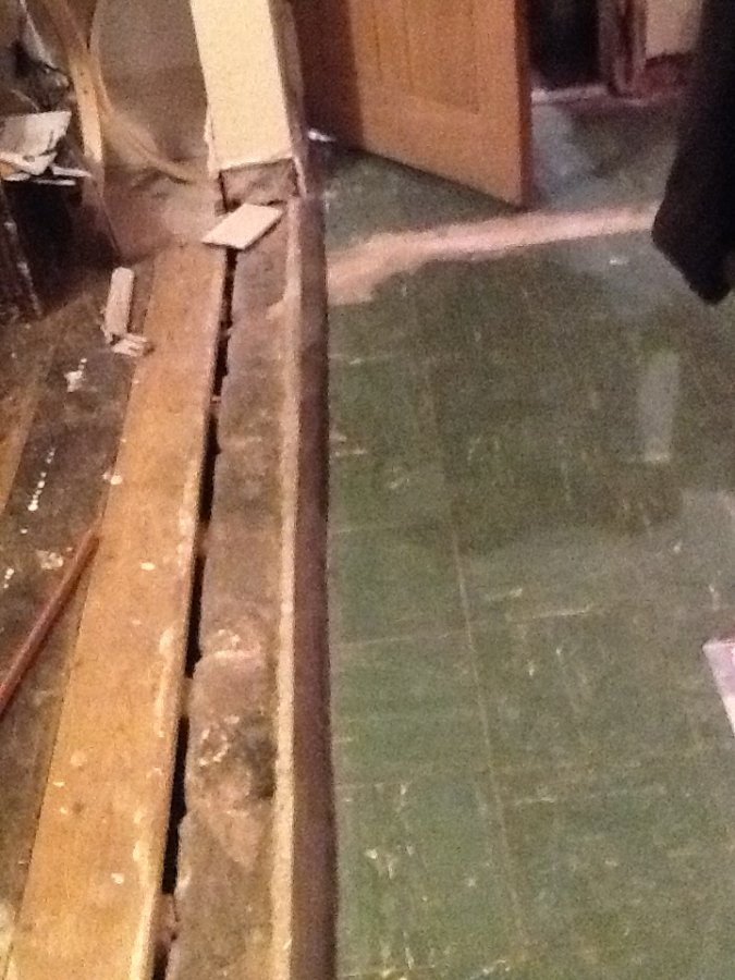 Hi all I'm new to this so forgive me if I've posted in the wrong section. We recently had a flood and the insurance won't pay out (long story) but now it's up to me to figure out this problem. The concrete floor and the wooden floor were joined by concrete but when I took up the carpet up it had all crumbled so I took it up today. Now I'm left with this trench, gap and not really sure what to do. The concrete floor is higher than the wood, by abou an inch I would like to sand the wooden floor and tile the concrete floor but what about the gap and any ideas of how I could make this a decent transition. Before we had carpet and it was slightly ramped. How should I fill this hole - Any help would be most grateful My kids are already falling into this trench in thee busiest room in the house - eek