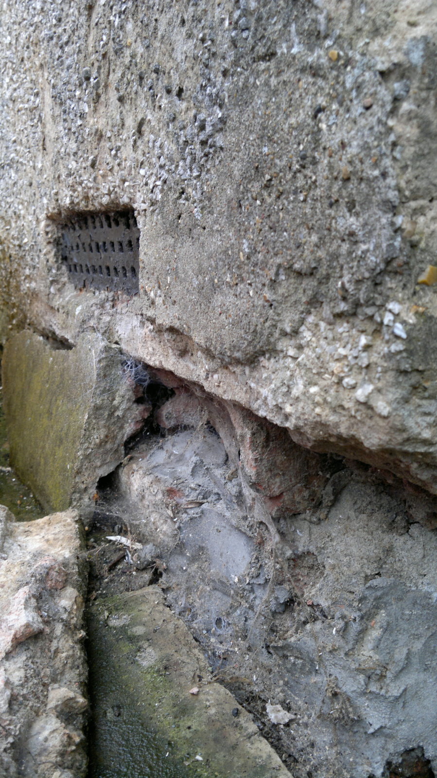 Think I have found the damp proof course, a layer of grey roof 'tile' just below the wall vents.