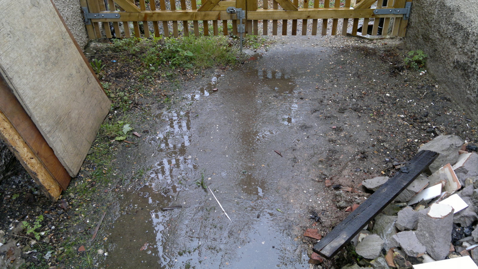 I am not sure how permeable it is at present judging by the puddles, I understand 'front' drives need to be permeable, if required I plan to create a drain running down the centre that simply soaks away, with an over flow to an existing drain.