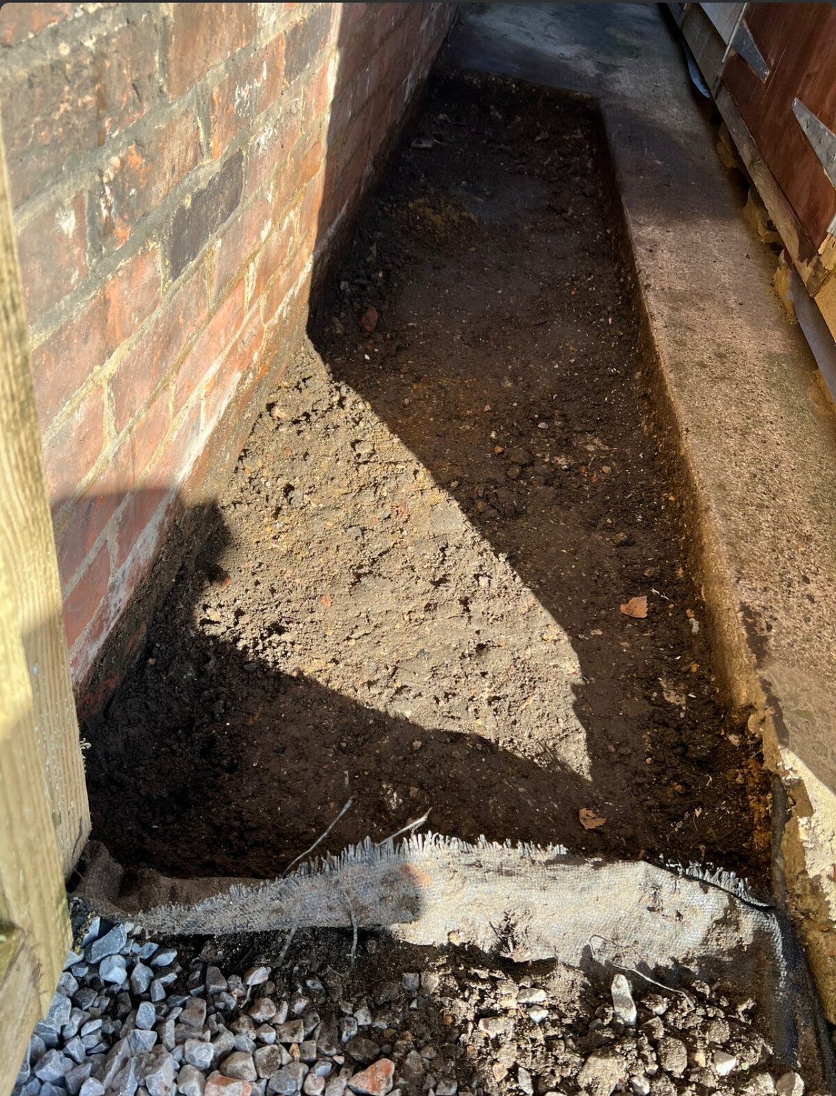 I’ve got around 8 bags of building sand and 3 of cement. I was considering paving slabs for this section but perhaps, I should concrete it. Can I have some advice and instructions for this please.