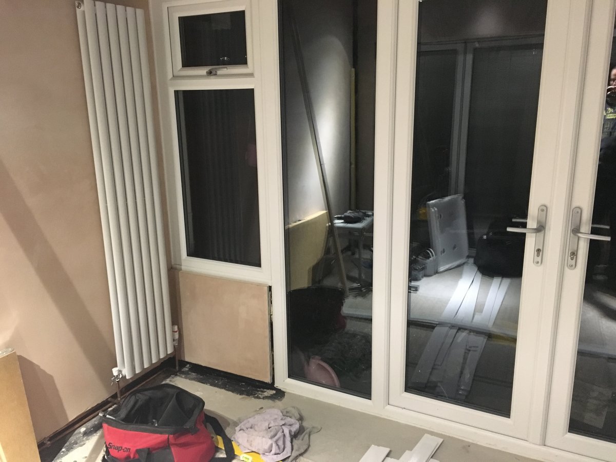 (Which wall has the insulated plasterboard? Can't see it in the photo.)