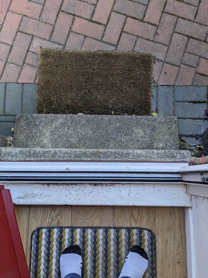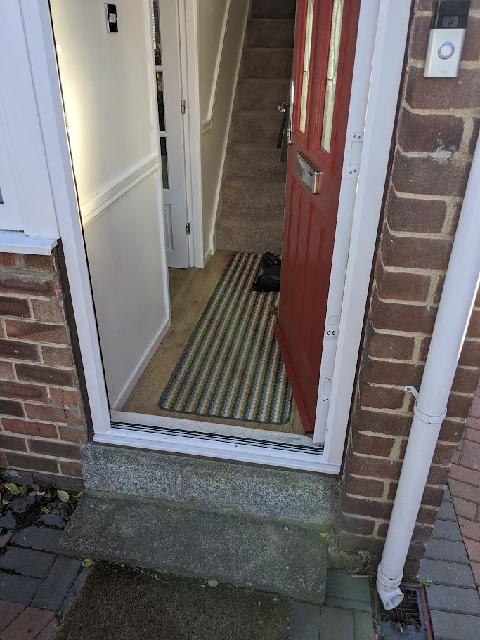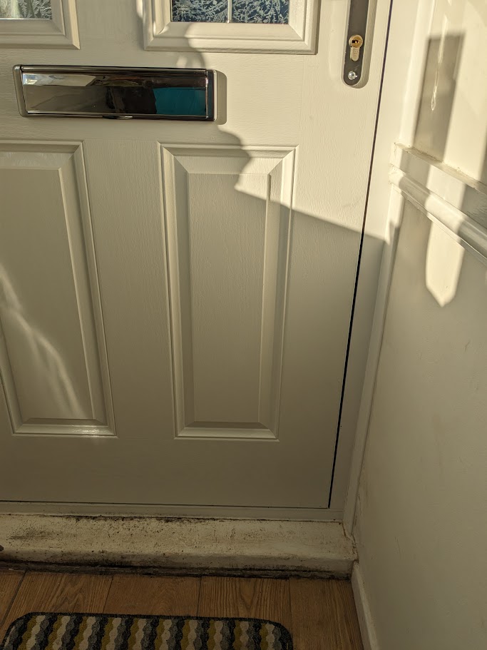 Hi all, my front door has been getting a lot of condensation at the bottom. Literally dripping off and on to the floor. The concrete steps sit between the brickwork of the house and so are exposed on the outside. Internally I have painted them before with masonry paint which got damp and flaked off. So I am of the mind that the concrete steps are soaking up moisture and cold causing the condensation? Is there anything I can paint them with to help or a better solution? Pictures below to help with the description: