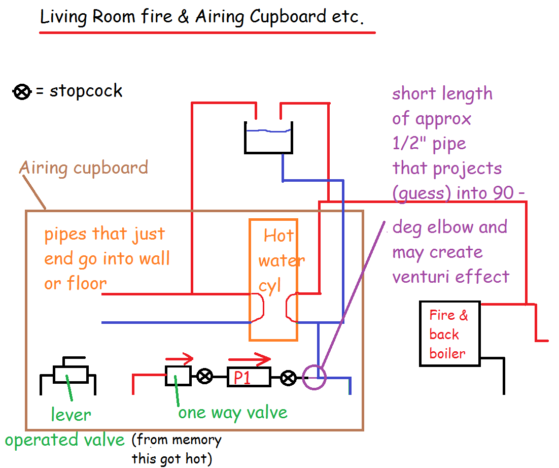 At the moment the oil fired boiler now rapidly trips its thermostat (which it did not previously do) and I suspect that when the oil fired boiler and its pump are running the new flowpath is trying to push water the WRONG way through the one way valve in the airing cupboard.