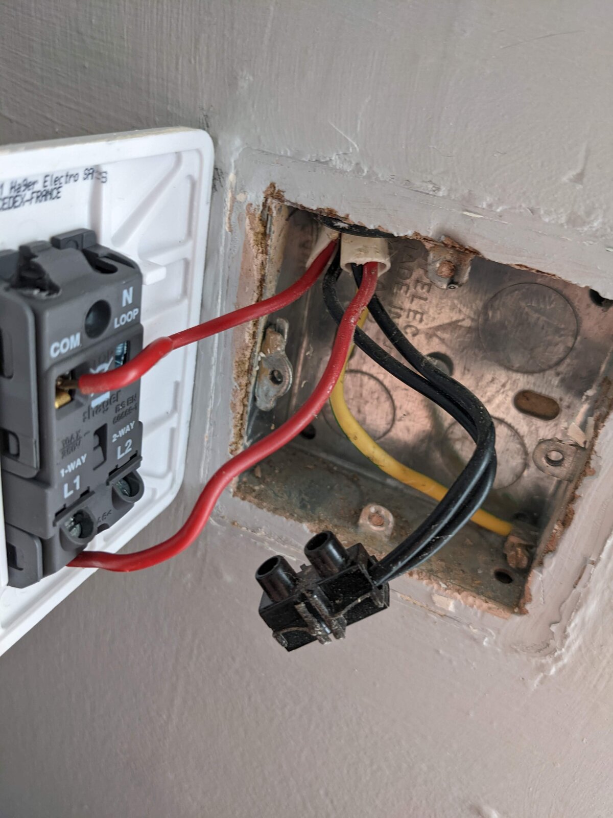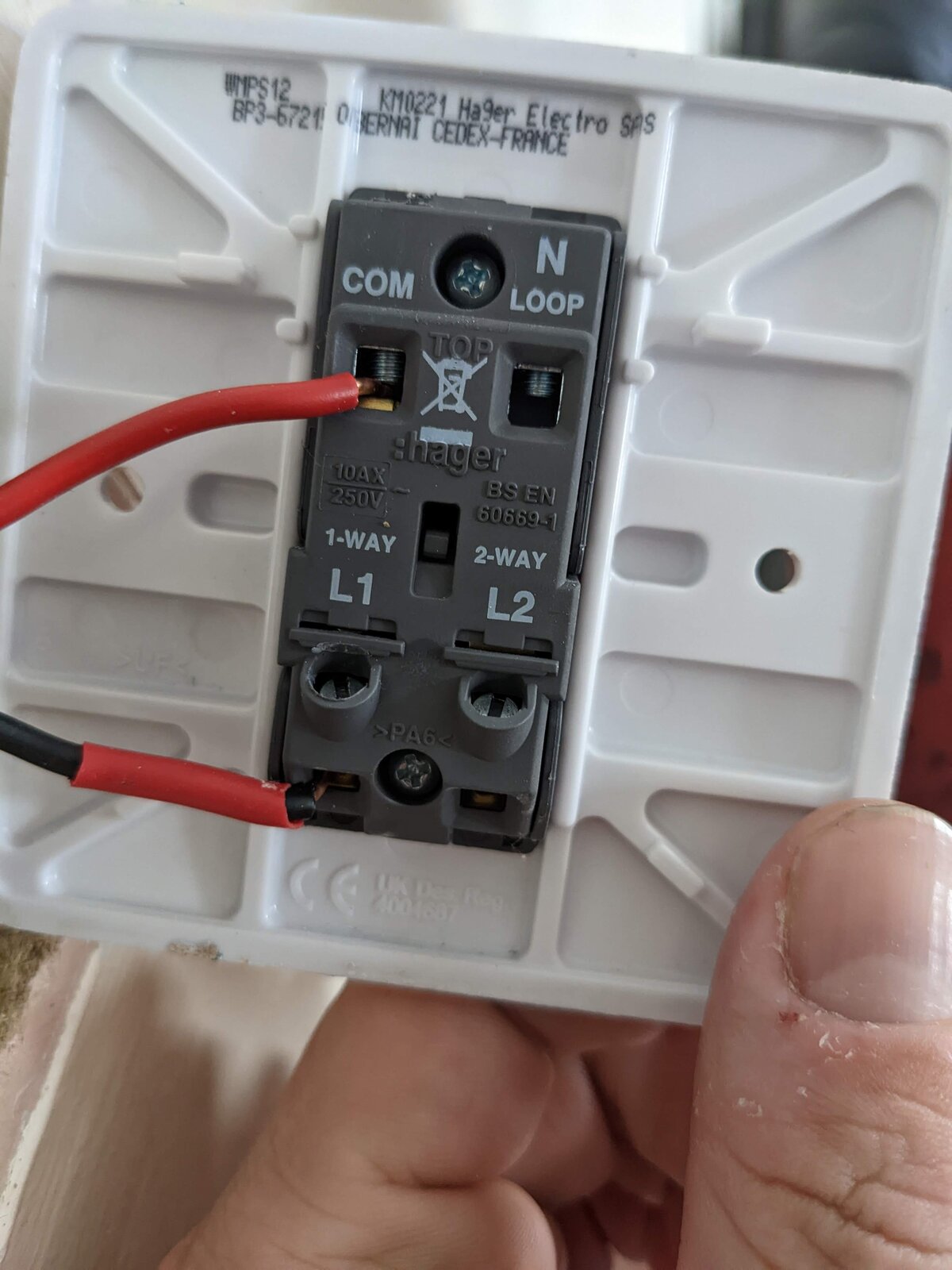 What I did for the living room light is put the black cable with the red sheath to one of the 2 L1 terminals at the top and the red cable to the diagonal L2 at the bottom. I moved the earth cable from the back box to the switch and ran a fly lead from the switch to the back box. All seems ok. Is this correct?