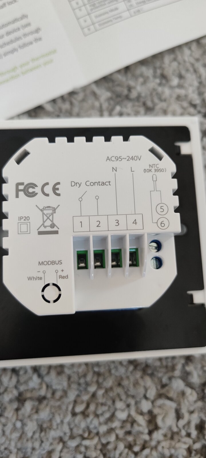 Hi, I need to connect BHT-002 smart thermostat to water/gas boiler. Unfortunately old thermostat was removed by previous owners and I have nothing to compare to. In the attached pictures of wires and Moes thermostat that I would like to install. could you please assist which cable should go where? Thanks in advance.