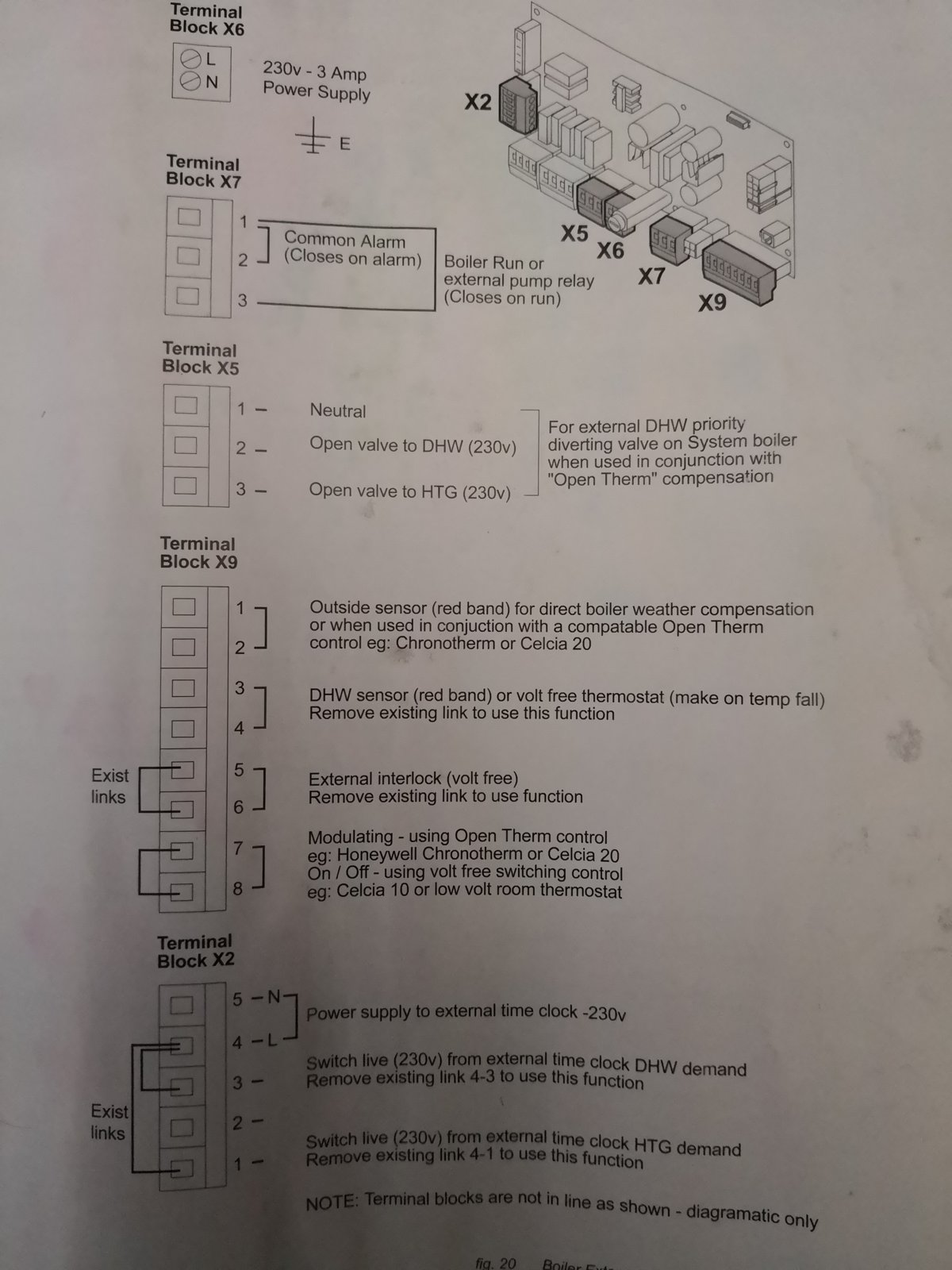 As your boiler supports opentherm, an opentherm thermostat would have been a better choice. The stat wires into block X2 after removing the link between 1 and 4.