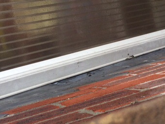 The make of roof you have is 'global' now owned by synseal, two ways of dressing the lead over the wall starter rafter, either right over covering the white capping as you'd expect or as you have it right now, the roof system incorporates a secret gutter built into the aluminium section so although the lead looks like it's just tucked behind the rafter and will leak like a sieve it's actually laying in the inbuilt gutter. I've attached a tech drawing of the make up of said rafter and gutter for your information. You'll need to remove the end cap just above the plastic gutter(a screw behind an oval cap), then peel the long rafter cap up, you'll then expose the gutter and possibly see why water is not running all the way down, could be a frame fixing in the way, a blob of silicone on even where the lead is overlapped and is twice the thickness could be causing an obstruction?