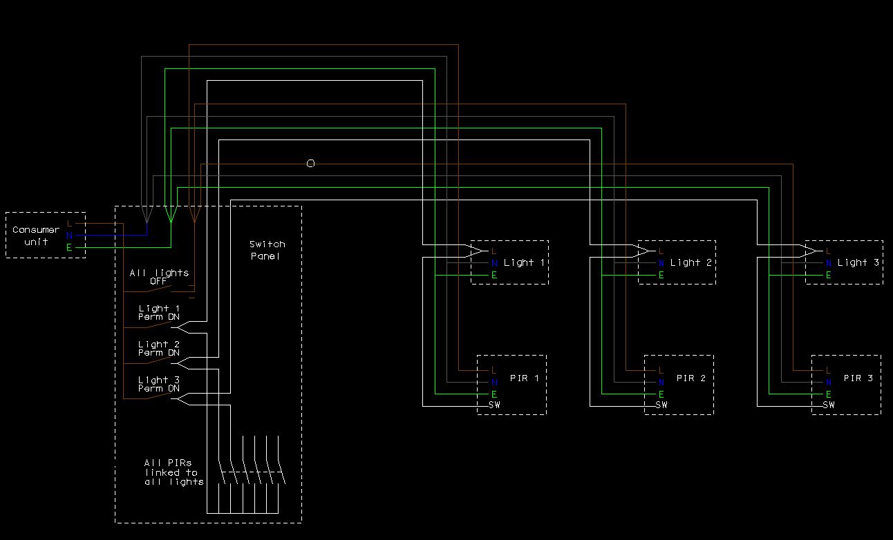 Good evening all I've got an interesting problem. I've been asked by a customer to wire up a series of outdoor flood lights and PIRs around a large property (over an acre in all).