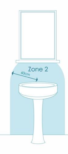 If the sink was moved, the fan heater would still be outside of any zones but the pull cord and fan heater could be touched with one hand in the sink. Is this acceptable?